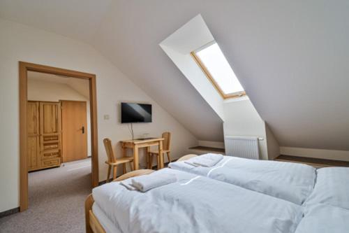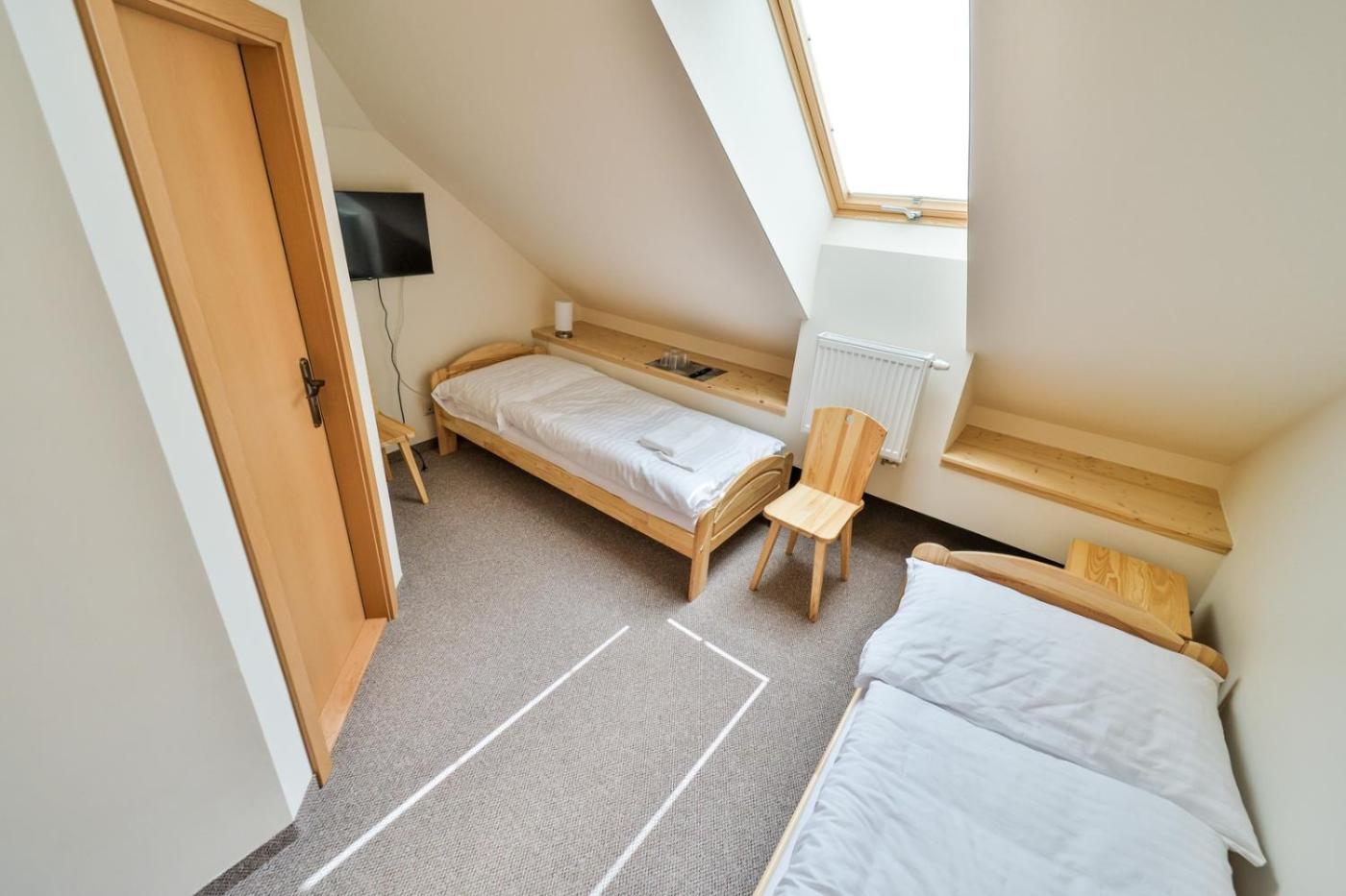 Basic Triple Room. The triple room offers a wardrobe, a carpeted floor, as well as a private bathroom boasting a shower. This triple room features heating and a flat-screen TV. The unit has 3 beds. ;